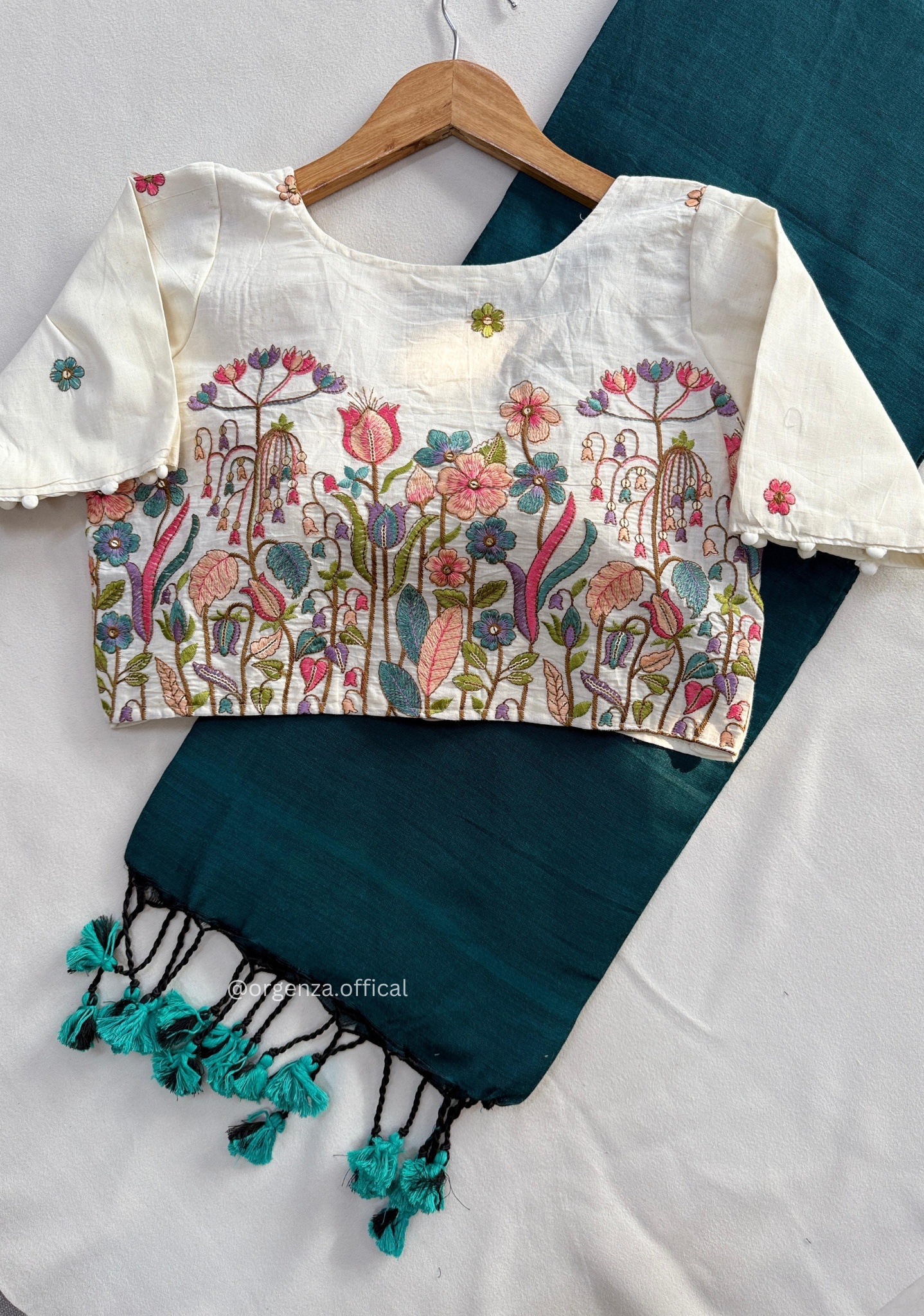 - Blouse: Havey Embroidery And Aura Cotton Padded With Pure Cotton Lining