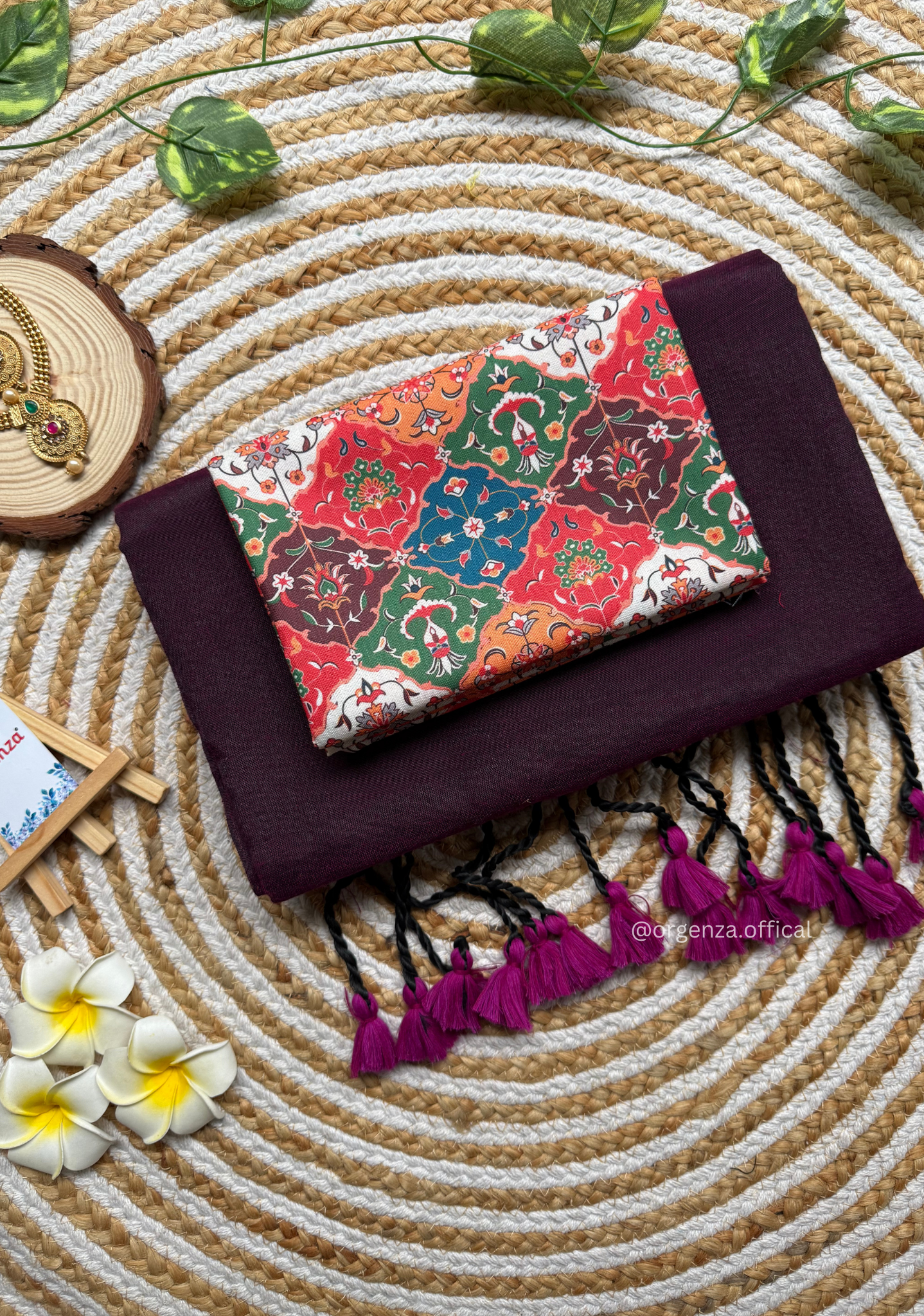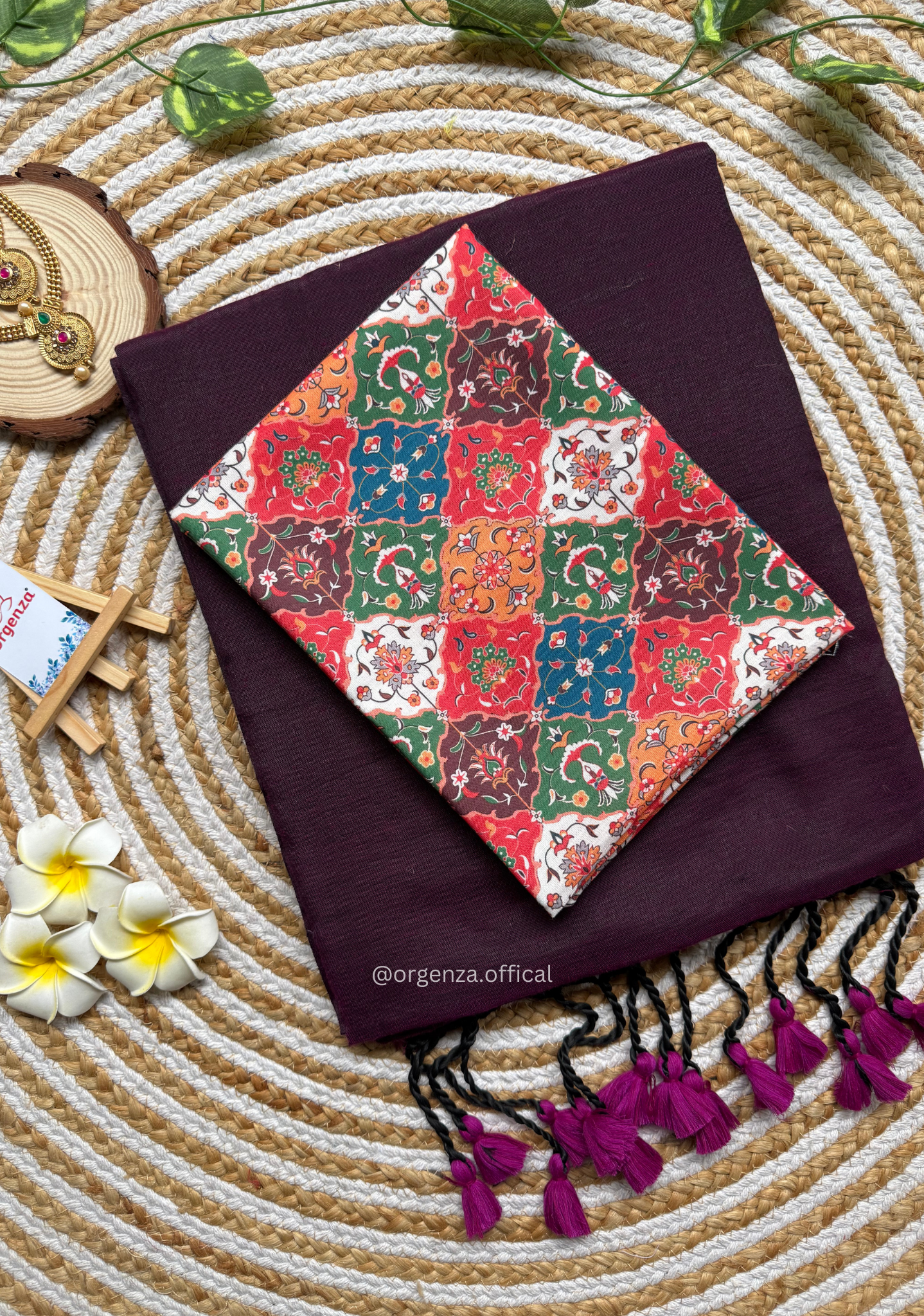 Orgenza Sky Purple Color Pure Organza Silk And Stone Work And Printed Flower Saree With Contrast Blouse