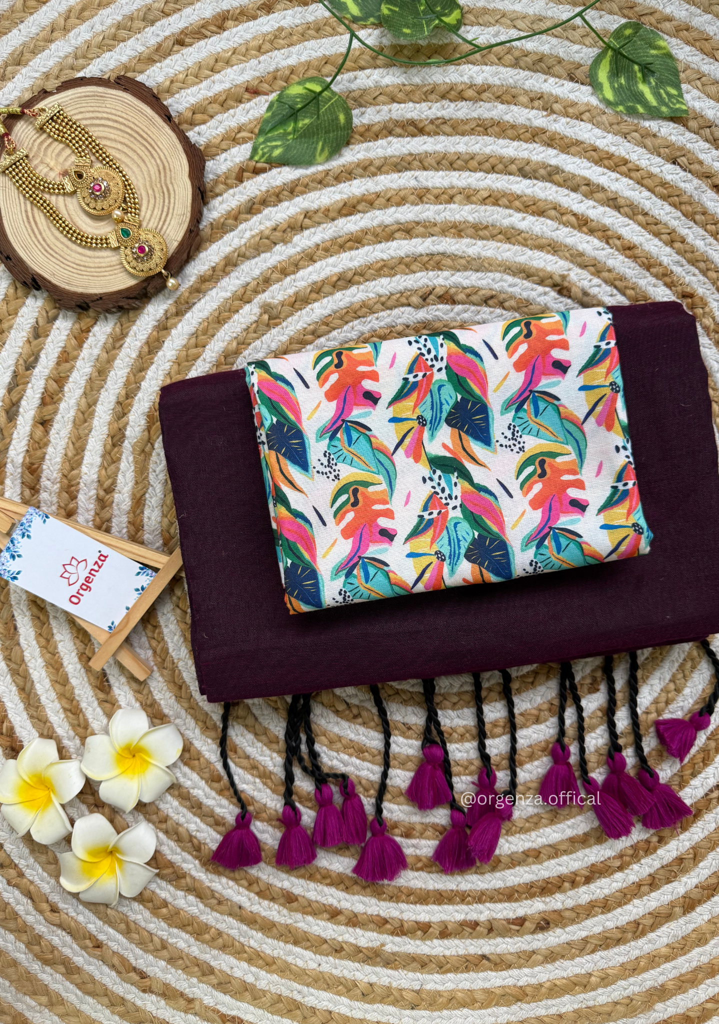 Orgenza Sky Purple Color Pure Organza Silk And Stone Work And Printed Flower Saree With Contrast Blouse
