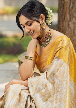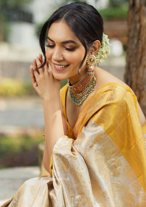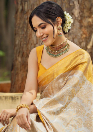 Yellow Colour Rich Pallu Saree Jacquard Zari With Blouse